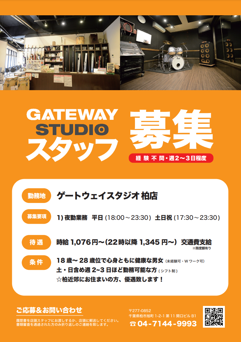 音楽スタジオ内での業務となります。 ※応募方法は各店記載の方法でお願いします。 書類選考のうえ面接を希望する場合のみご連絡します。